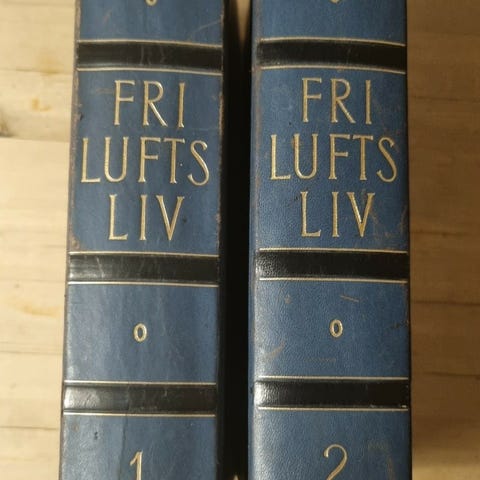 To bøker med sv/hv illustrasjoner av kjente kunstnere og tekster av kjente personer fra den tiden. Undertittel: Fra fjell og skog - Fra sjø og land. Bind 1 inneholder 403 sider, og bind 2 inneholder 398 sider. Utgitt under krigen. Selges samlet. Ingen bruks-spor, bortsett fra et par små rifter på toppen. Bøkene selges samlet, prisen er for begge.