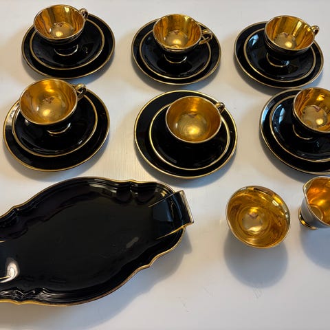 Gammel Porsgrunn porselen, gullbelagt