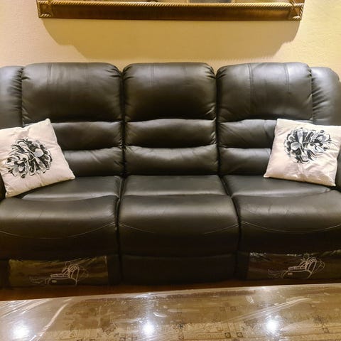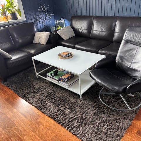 Selger en stor, nydelig stuesofa i skinn, i svart og hvit. Sofaen er godt brukt og har slitasje i skinnet enkelte steder, så den trenger kjærlighet. Passer perfekt for deg som ønsker å gi den nytt liv – for eksempel med nytt trekk.