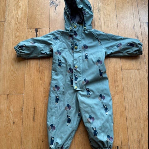 Vinterregndress fra kattnakken selges. Den har en misfarget flekk foran (se bilde), har ikke forsøkt å vaske den vekk. Dressen er uten skader, men trenger en vask.
