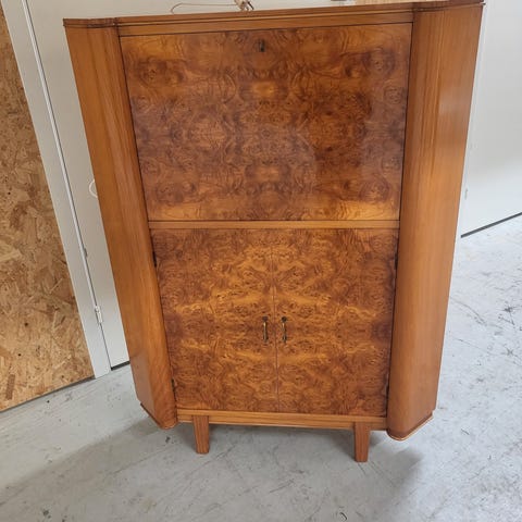 Nydelig sjenk / kommode i god stand selges. Den skrå hyllen som kan lukkes sklir godt og det gjør skuffene også. 4 nøkler medfølger - vil påstå den er i skjeldent god stand.