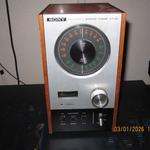 Radio fra ca 1950, vet ikke tilstanden. Forsøkte å koble til men den slår seg ikke på. Vet ikke verdi, kan kanskje være noe for samleren.
