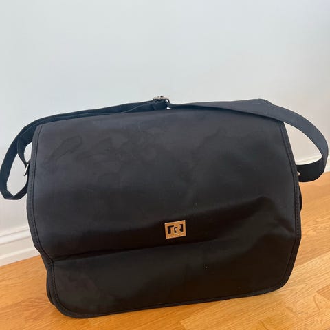Pent brukt stellebag, sort imitert skinn. Merke easygrow. Mange praktiske og gode lommer.