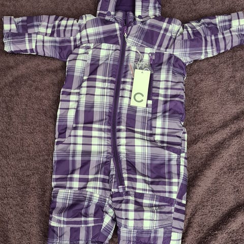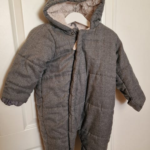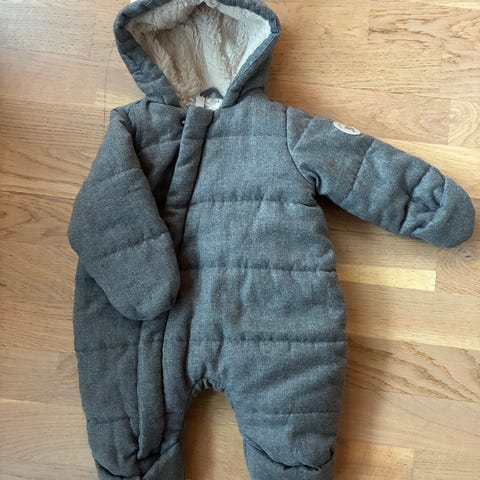 Cubus vinterdress for barn i størrelse 62-68. Dressen er grå og laget av polyester. Den har hette med fôr med søte ører. Både hender og føtter kan dekkes til med påsydd «overtrekk».