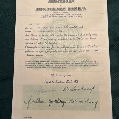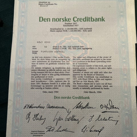 Aksjebrev - Herlofson Shipping Co AS og Skien Investeringslag AS