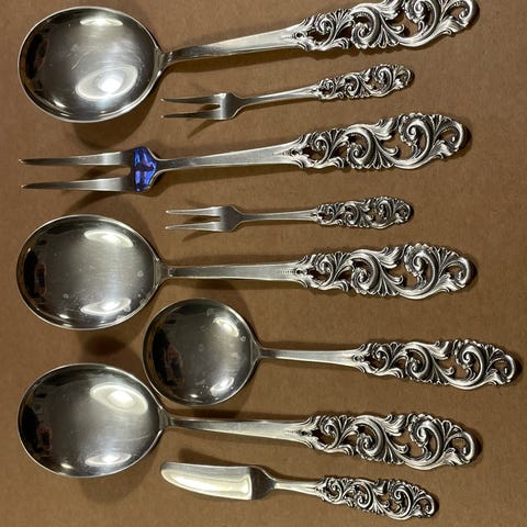 Telesølv - 2 syltetøyskjeer, 2 koldtgafler og 1 smørkniv