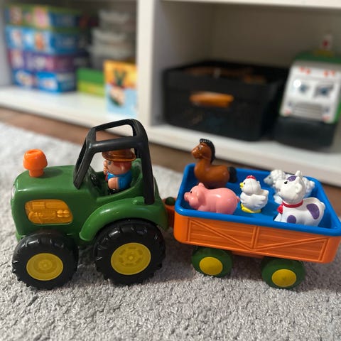 Fisher-Price Little People barneleker med flere fargerike figurer og tilbehør. Lekene inkluderer små figurer og klosser i plast, designet for barn.