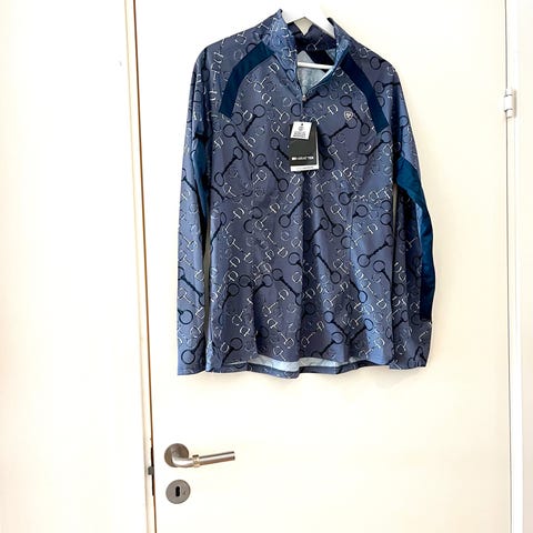 Equestrian Stockholm sportsoverdel for kvinner i størrelse L. Passer til ulike sportaktiviteter. Bare send melding for flere bilder! På stripen nedover armen står det: Power Woman. det var litt vanskelig å få på bildet