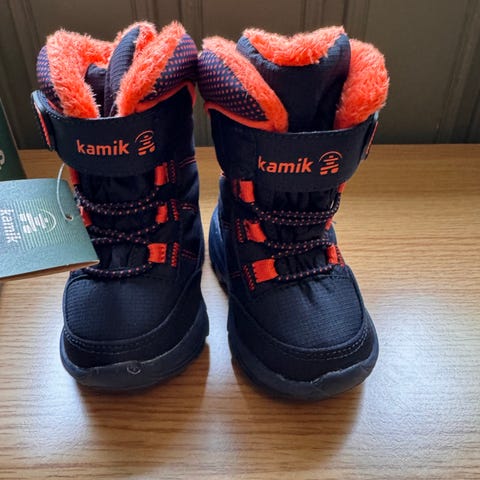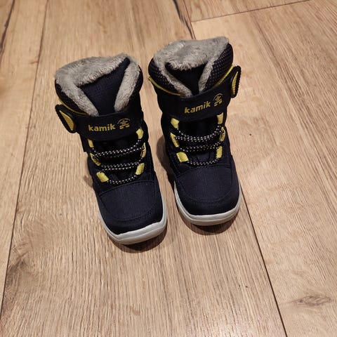 Kamik barnesko størrelse 22. Skoene har en slitesterk såle med godt grep og er foret med tykk isolerende materiale for varme. Yttermaterialet er vannavstøtende, egnet for de kaldeste forholdene. Skoene har justerbar snøring for god passform.