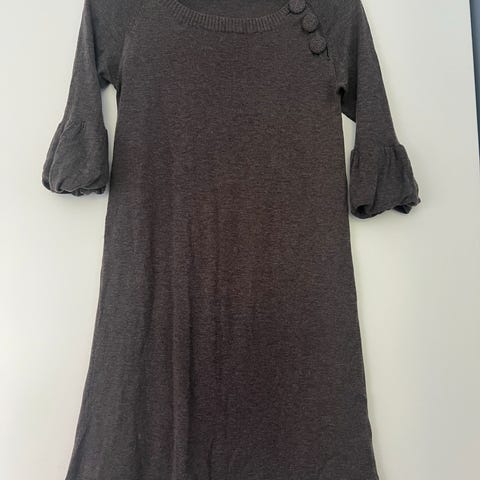 Part Two kjole i størrelse L, laget av deilig mykt ullmateriale. Kjolen er grå og er ca 100 cm lang fra skulder og ned.