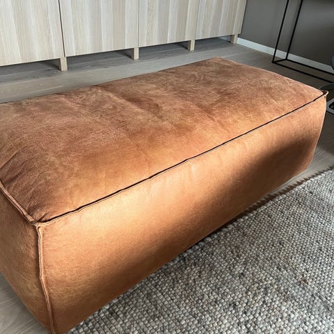Flotte store puffer fra Bohus selges samlet . De er av meget god kvalitet . Ull i stoff . De er knapt sittet på . Stått til pynt ! Farge brun . De har også god oppbevaringsplass . En stykk kostet 10.100 selger begge for 8000