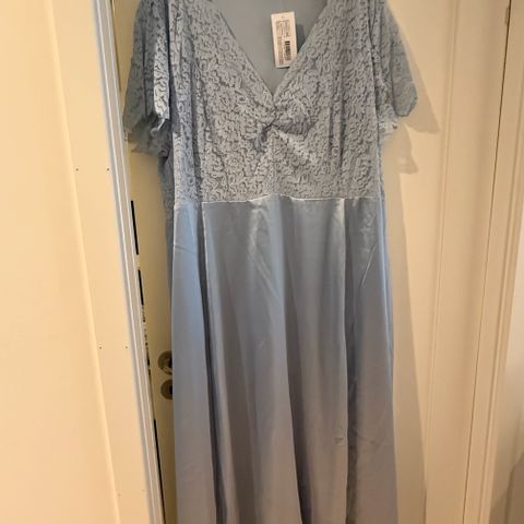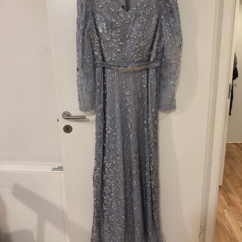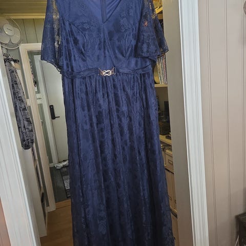 Denne vakre kjolen er aldri blitt brukt da den ikke passet helt ettersom årene gikk. Den er laget av rayon og silke. Perfekt i bryllup! 128 cm lang / 35 cm midje