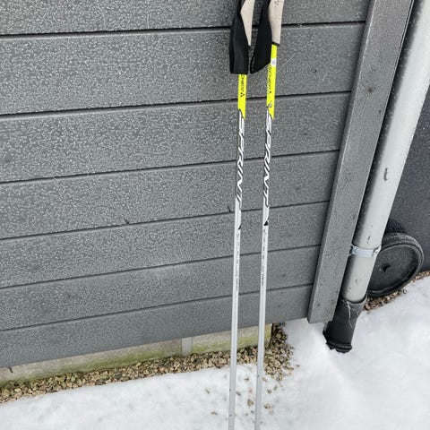 Selger et par skistaver til barn fra Fischer. De er 95 cm, men ser ut som de er justerbare (vi har bare brukt de på 95).