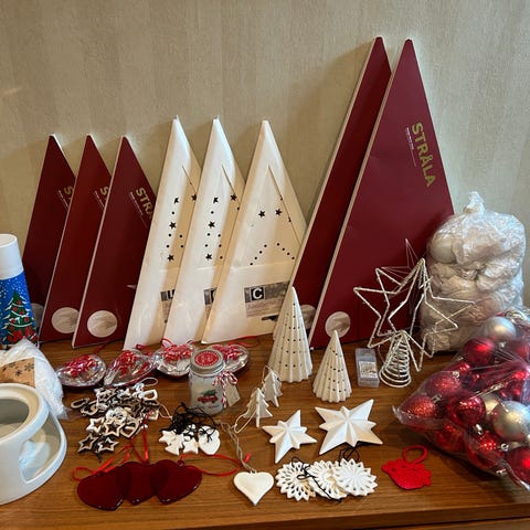Julepakke m/pynt,tekstil,stjerner, m.m