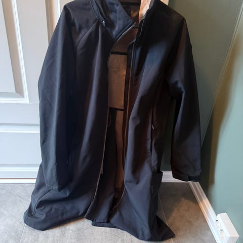 Selger denne pent brukte regnjakken fra Samshield (herre). Den er vindtett, vanntett og lett. Den har en glidelås i nakken som gjør at man kan ta hetten inn og ut. På bildet er hetten ute. Bare ta kontakt ved spørsmål! (Den har luftehull under armene)