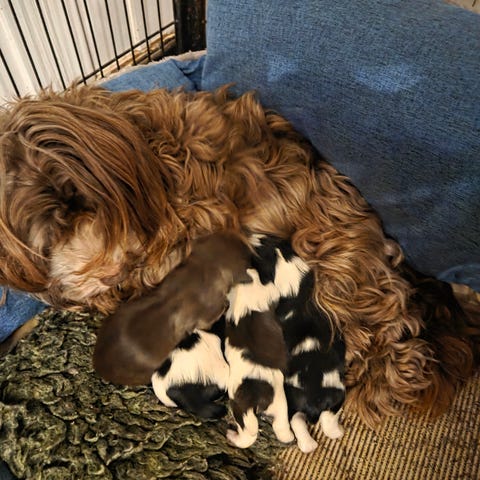 02.01.2026 fikk Najoli’s Bodil (Fersken) har fått 5 flotte sorte valper med pappa Kambiones Xavi(Billi)