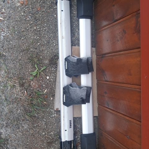 Komplett Thule takstativ som inkluderer låser og nøkler for sikker montering. Passer til Skoda Enyaq. Dette er kun satt på bilen ifm en forsikringssak og tatt av igjen, ikke brukt. Ny pris 3899 hos THansen.