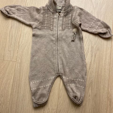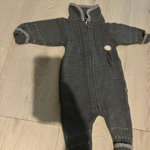 Sjøgrønn Lillelam dress tynn. Flekk i halsen se bilde ( ikke forsøkt fjernet) også er den sydd i beinet der den skal brettes opp så synes egentlig ikke! Se bilde