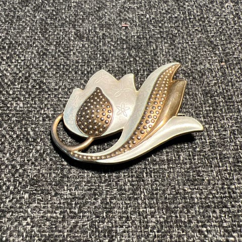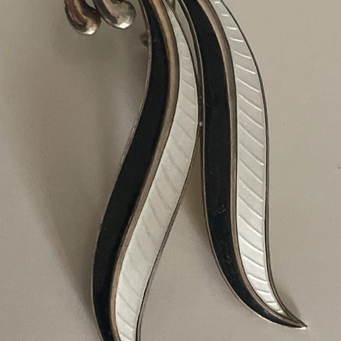 Nydelig anheng i sølv og emalje selges for 800 kr. Flott vintermotiv med en skogsfugl. Full høyde 6 cm og diam. 4,5 cm. Fullstemplet. I god stand, med en ørliten ripe som ikke kan sees med det blotte øye. Kan sees på det tredje bildet over hodet på fuglen.