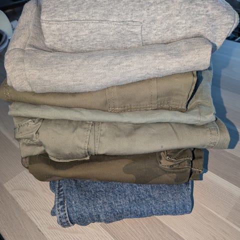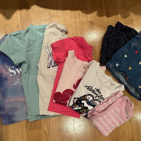 Mye fint som er blitt for lite. Mest i 140 eller 134/140. Kan forekomme noe misfarging/ flekker på noe. Ingen hull.