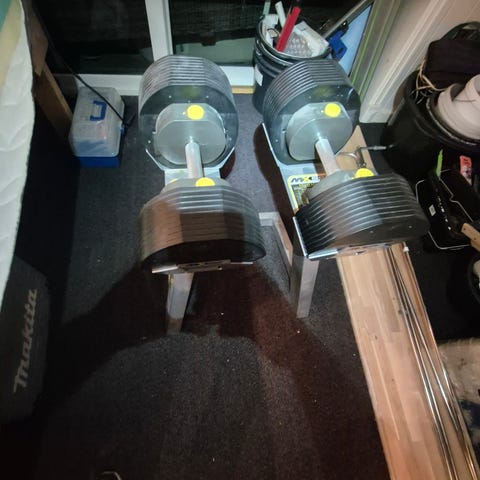 MX55 Vektmanualer sett med justerbar vektinnstilling. Manualene har et håndtak med grep og en vektstang som kan tilpasses fra 5 til 55 lbs (2,3 til 24,9 kg). Egnet for styrketrening og generell trening.