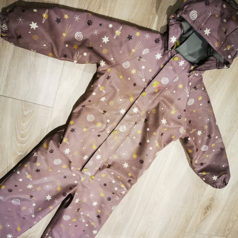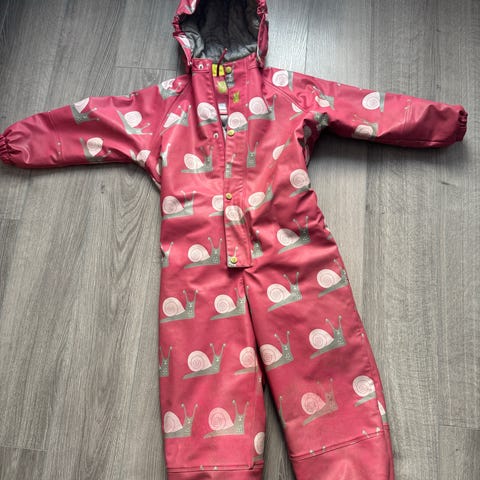 Kattnakken vinterregndress i str.116. Brukt av to barn, kan ha fått noen små rifter, men ingen synlig hull.