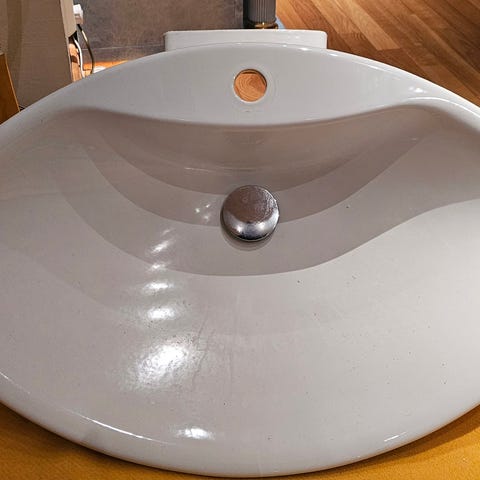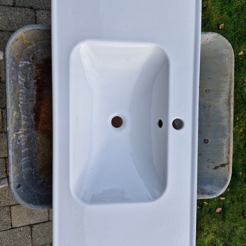 Selger Loop toppmontert servant med overløpshull, helt ubrukt. Har aldri vært montert og monteringssett og originalemballasje følger med.