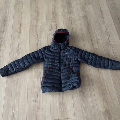 Pent brukt jakke. Uten hull eller skader. En liten pose i innerlommen som kan brukes til å pakke jakken i slik at den kan puttes i sekken. Fin som underlag under en vindjakke.