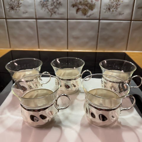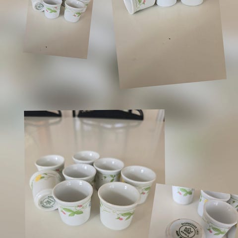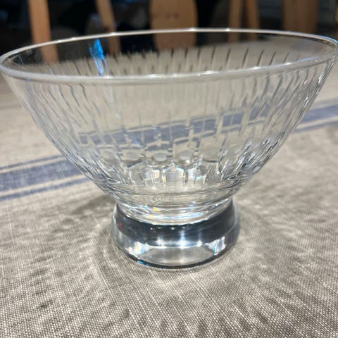12 stk. vintage dessertskåler og krukke i glass. Disse er arvet, men veldig lite brukt av både meg i tidligere eier. Den ene skålen har litt mer grønnskjær i fargen, men ellers er alle helt like.