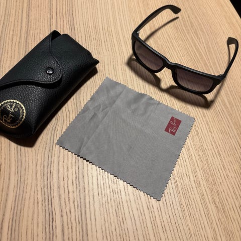 Ray-Ban solbriller for unisex. Inkluderer etui og rengjøringsklut. Klassisk design med mørke glass og metallramme.