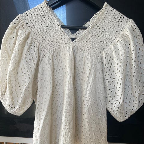 Lite brukt, men har røket strikken på en knapp nede ved ermet.