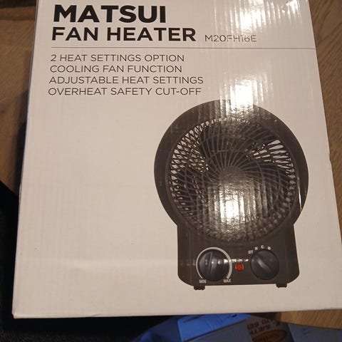 Point vifteovn i hvit farge med digital kontrollpanel på toppen. Kompakt og bærbar design med innebygd håndtak for enkel transport. Egnet for oppvarming av mindre rom.