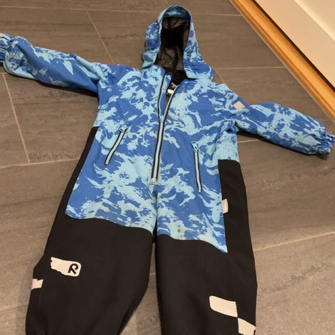 Pent brukt til 1 barn. Svært lite bruksmerker. Eneste litt på refleks og noe "kliss" på ene foten (kan kanskje vaskes bort?). Fotstropper orginsle og intakt. I meget god stand