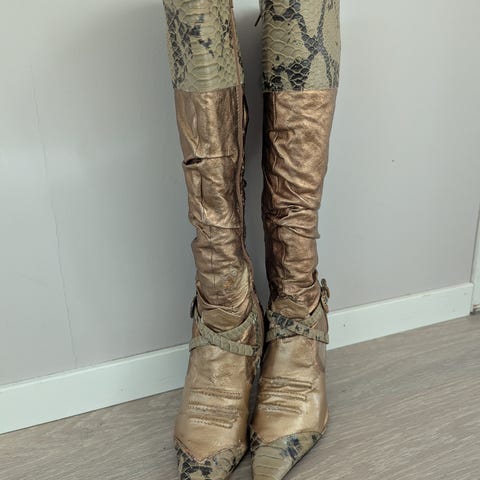 Høye gull støvler, maks brukt 6 ganger.