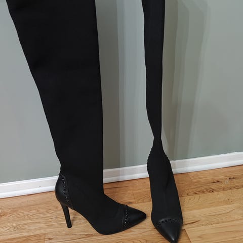 Støvlene kan brettes opp eller ned i skaftet, slik at du kan velge om de skal være kne lange eller gå opp til midt på låret.