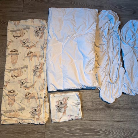 Barnedyne 80x100 + fire sengetøy sett, brukt t to gutter men mye bruk igjen. Nyvaska og leveringsklar 👍