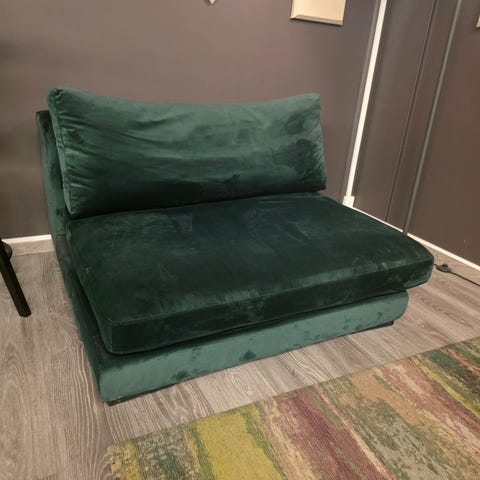 Sjekkingen er akkurat slik på bildene. Samme farge og er pent brukt noen år. Behagelig å sitte i og svært populær!