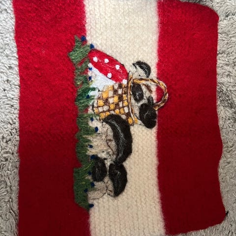 Flott sitteunderlag i 100 % ull som lett kan henges opp på en knagg.