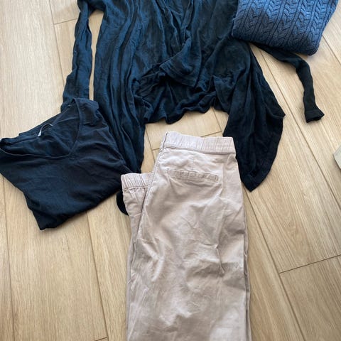 Inneholder shortser, leggings, tskjorter, gensere, kjole ++ . Mye av det er veldig lite brukt. Bruksmerker, løse tråder og flekker kan forekomme på brukte klær jeg selger.