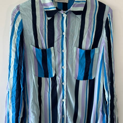 Kortermet skjorte fra samsøe samsøe. Ca størrelse L. Hovedsakelig viskose. Veldig behagelig og fin.