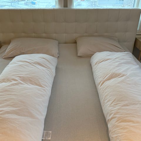 Svak skrånende hodegavl gir komfortabel ryggstøtte når nettavis eller bok leses i sengen.