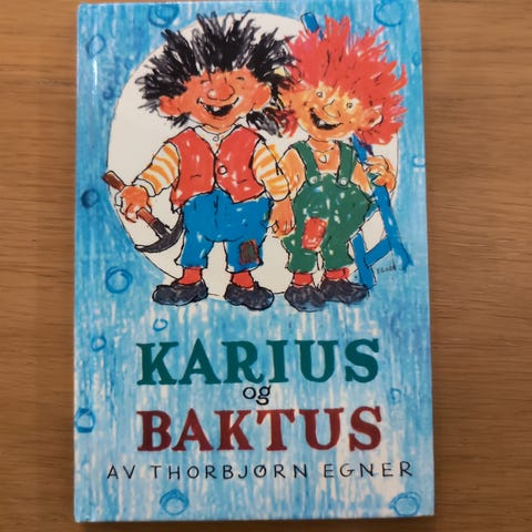 Cappelen Damm Karius og Baktus barnebok illustrert av Thorbjørn Egner. Boken er en klassisk barnebok med tekst og illustrasjoner som omhandler to små figurer, Karius og Baktus.