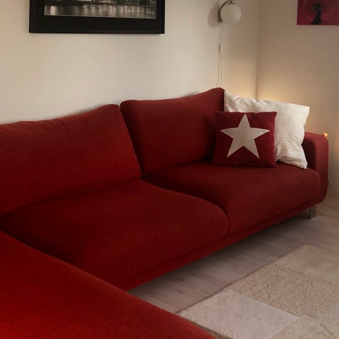 Pent brukt sofa fra Bolia. Farge: petrol. Noen bruksmerker her og der, men ingen veldig synlige. Et ben som er litt skjevt, men kan enkelt rettes opp ved riktig verktøy.