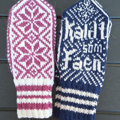Brannvotter til dame/ ungdom. Strikket med garnet Pt5 fra Rauma. Kjøper bet. event. porto