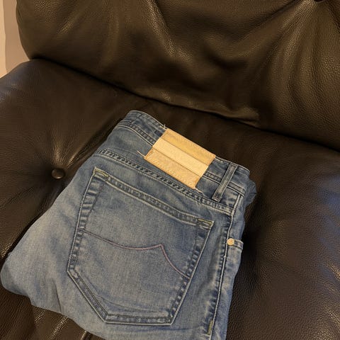 Pent brukte Jacob Cohen bukser til salgs. De er 36 i midjen, men passer egentlig alt fra 34 - 36 og de er også 32 i lengden. Disse er lite brukt av meg personlig og har kun tydelige bruksmerker på patchen. Kan både sendes og hentes. Ta kontakt hvis du lurer på noe.