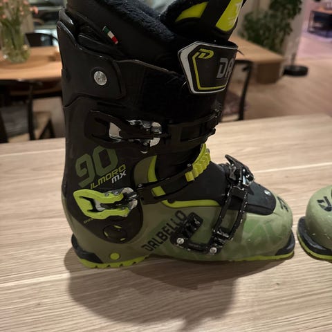 Selger et par Dalbello il Moto MX90 alpinstøvler i str 26,5 (str 41). Passer godt i park og til jibbing, men også til vanlig alpint. Skoene er brukt til parkkjøring og har en del bruksmerker.