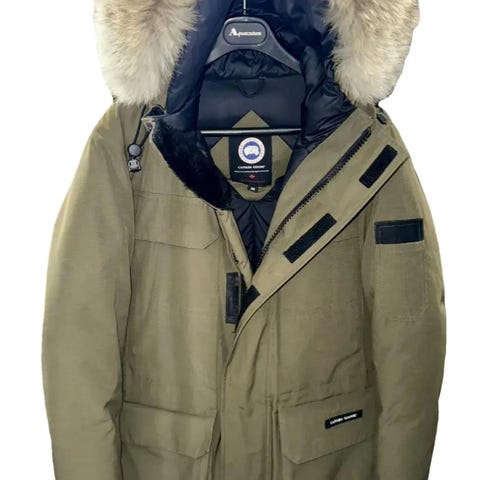 Tidløs, elegant vinterjakke: Canada Goose Citadel Parka i Spirit Blå, Størrelse Medium, med ekte Pels. For menn.