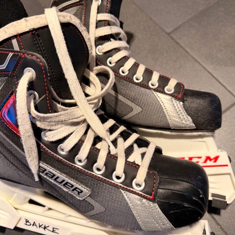 Bauer Vapor ishockeyskøyter i størrelse 47. Skøytene har svart farge med detaljer i rødt og hvitt. Egnet for ishockeybruk.. gode skøyter, kjøpt på Torshov sport