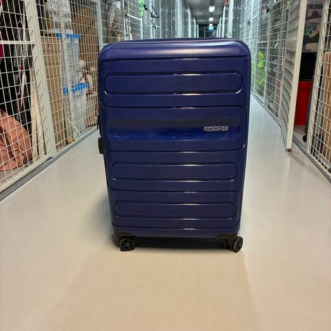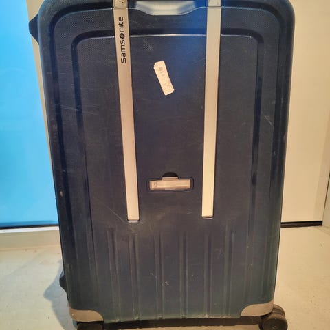 American Tourister Bon Air kabinkoffert. Godt brukt, men utrolig slitesterk. Har vært veldig takknemlig for denne. Rommer det man trenger, triller lett, og akseptert av alle flyselskap jeg har prøvd.