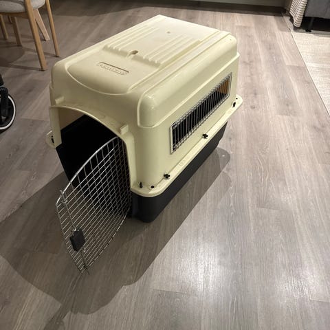 Petmate Vari Kennel Transportbur i stor størrelse, grå farge. Laget av slitesterkt plastmateriale med ventilasjonsåpninger på sidene. Egnet for transport av kjæledyr.